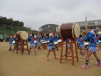 幼稚園児の元気な太鼓の演奏で啓発パレードが始まりました。