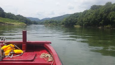 船上から見る景色は、天王山と男山に挟まれ、自然がいっぱいでした。