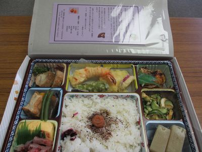 そして、お昼のお弁当は、地元の名産にこだわっ た、食代、夏の季節の食材が提供されました。