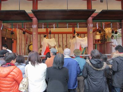、絵馬を奉納したり、また、雅楽の音が華やかに響いていま